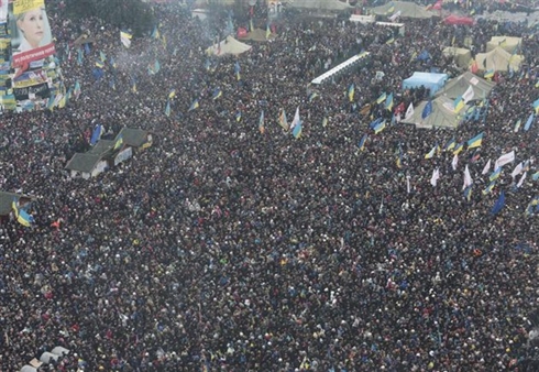 | Environ 150.000 personnes se sont rassemblées le 15 décembre dans le centre de Kiev. |