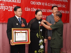 Lors de la cérémonie de remise, le général Somphon Keomysay, président de l'Association des vétérans lao, a particulièrement apprécié les nombreuses activités philanthropiques de Lê Van Kiêm menées au Laos ces derniers temps, telles que le soutien aux vétérans lao pauvres, aux victimes d'inondations, la construction d'écoles, de "maisons du cœur" et d'un monument à la mémoire des frères d'armes vietnamiens et laotiens tombés au champ d'honneur...