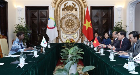 | Entretien entre le vice-Premier ministre et ministre des Affaires étrangères, Pham Binh Minh, et la secrétaire générale de l’OIF, Louise Mushikiwabo, le 6 décembre, à Hanoï. |