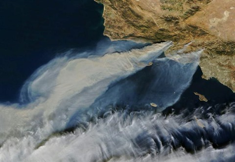 | Les incendies autour de Los Angeles, en Californie, photographiés depuis l'espace le 5 décembre. |
