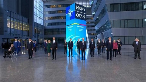 | Photo famille des dirigeants de l'Organisation du traité de l'Atlantique Nord, le 14 juin à Bruxelles. |