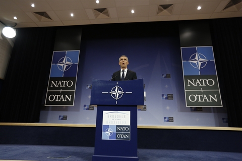 "Nous avons accepté que l'OTAN devienne membre à part entière de la coalition internationale, dont les 28 pays de l'OTAN font de fait déjà tous partie", a déclaré le secrétaire général de l'organisation, Jens Stoltenberg, au cours d'une conférence de presse donnée jeudi 25 mai après le Sommet de l'OTAN.