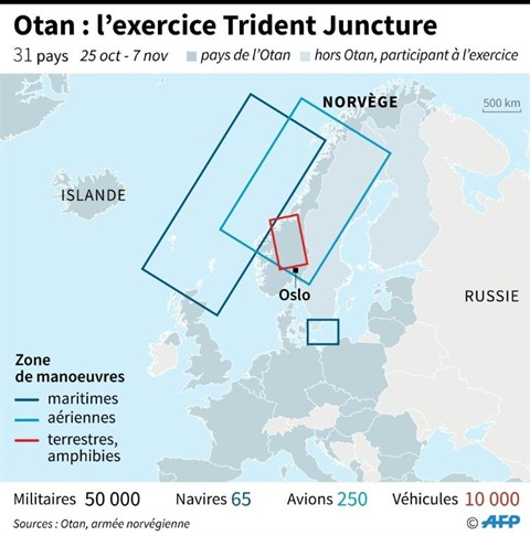 Quelque 50.000 soldats, 10.000 véhicules, 65 navires et 250 aéronefs de 31 pays doivent prendre part à l'exercice Trident Juncture 18, qui vise à entraîner l'Alliance atlantique à porter secours à un de ses membres en cas d'agression. "L'environnement sécuritaire en Europe s'est significativement dégradé ces dernières années", a souligné le secrétaire général de l'OTAN, le Norvégien, Jens Stoltenberg.