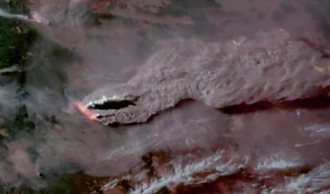 | Image satelite de la fumée du Bootleg Fire, dans l'Oregon (Ouest américain), le 13 juillet. |