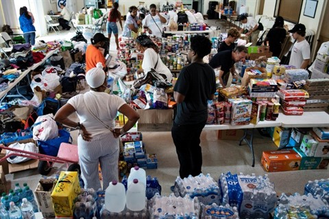 | Des personnes rassemblent les dons en aide aux victimes de l'ouragan Dorian, à Miami en Floride, le 3 septembre. |