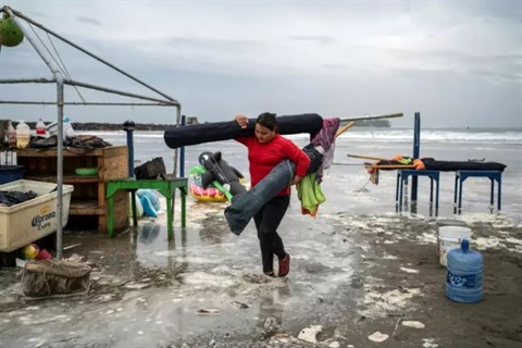 "Nous sommes en train d'enlever tous les parasols (de la plage) que nous avions parce que la marée est en train de monter", a dit Victor Morales, qui tient un restaurant.