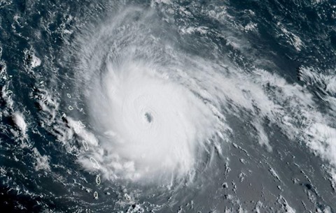 | L'ouragan Irma vu de l'espace sur une image fournie par l'agence américaine d'observation océanique et atmosphérique, le 5 septembre. |