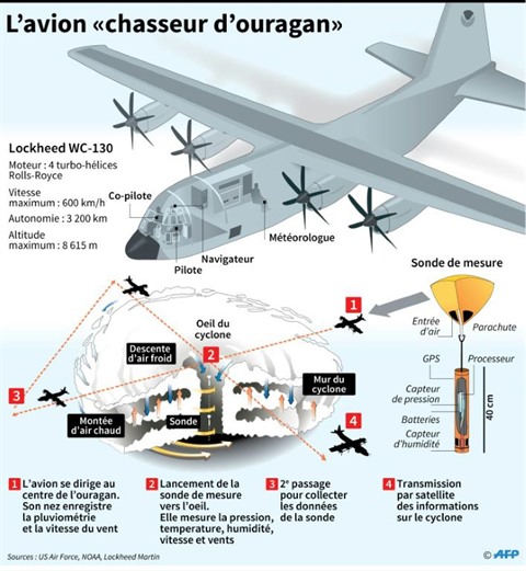 | Fiche sur l'avion Lockheed WC-130 qui enregistre des données sur les cyclones. |