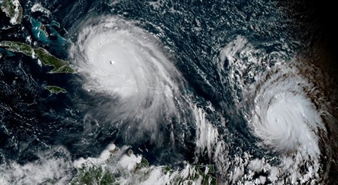 | Les ouragans Irma (gauche) et Jose (droite) au dessus des Antilles, le 7 septembre. |