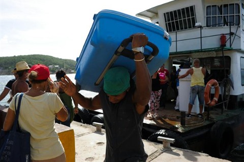 | Des habitants de Granna Island évacués à l'approche de l'ouragan Matthew, le 2 octobre à Santiago de Cuba. |