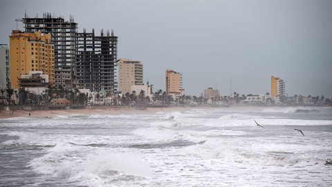 À Mazatlan, les hôtels du front de mer étaient presque vides lundi 22 octobre, et du personnel s'affairait à protéger les installations avec des sacs de sable et des panneaux de bois.