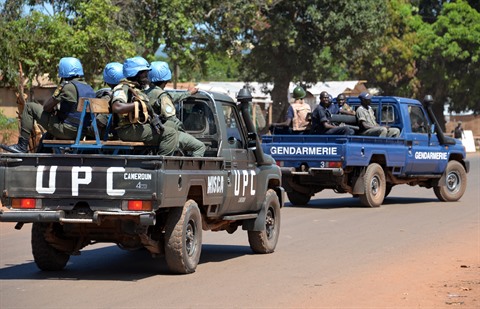 | Les forces de maintien de la paix de l'ONU à Bangui, en Centrafrique. |