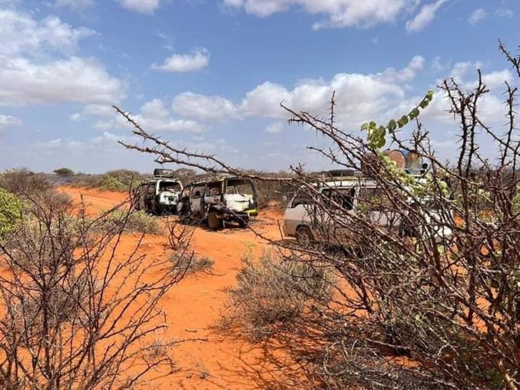 | Photo prise le 3 septembre montrant le site d'un attentat aux environs de Beledweyne, dans l'État d'Hirshabele, en Somalie. |