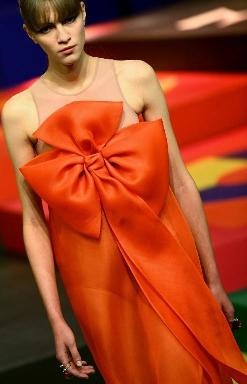 "J'aime beaucoup, c'est un changement radical, c'est chouette, c'est jeune, c'est optimiste, on a besoin de ça, de couleurs, de sortir de noir et de bleu marine, de voir des imprimés presque un peu brésiliens", souligne Pascal Coppin. La scénographie du défilé conçue par l'Italienne Anna Paparatti, figure de la scène artistique romaine des années 60, est également inattendue entre le "jeu de l'absurde" et la performance.
