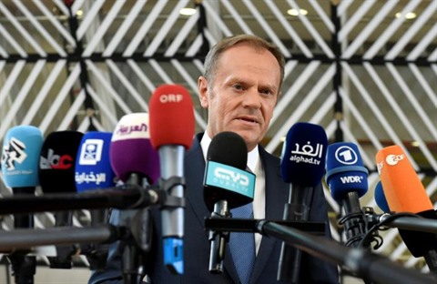 | Le président du Conseil européen, Donald Tusk, à son arrivée à Bruxelles pour un sommet, le 29 avril. |