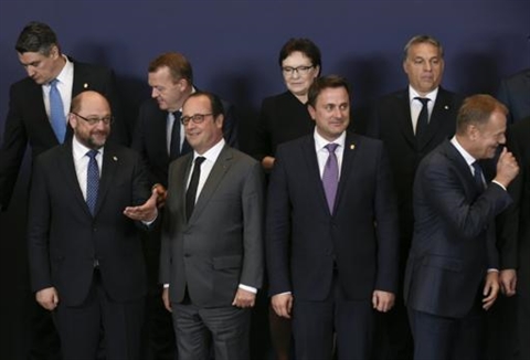 | Martin Schulz, François Hollande, Xavier Bettel et Donald Tusk lors du sommet européen réuni le 15 octobre à Bruxelles. |