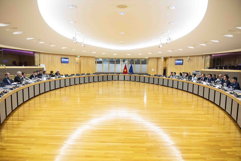 | Panorama de la 3e réunion du Comité du commerce pour mettre en œuvre l'EVFTA, le 1er décembre à Bruxelles, en Belgique. |