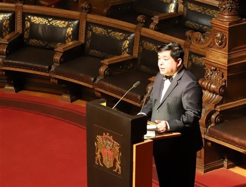 | Le ministre du Plan et de l’Investissement, Nguyên Chi Dung, s’exprime lors du Banquet d’amour (Liebesmahl) organisé le 15 mars à Hambourg, en Allemagne. |