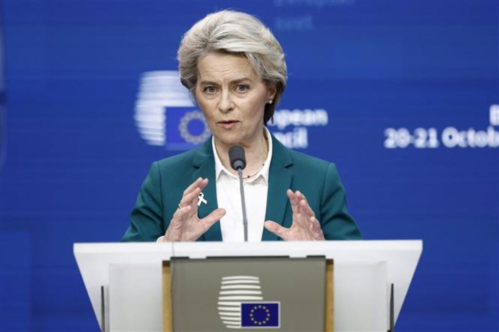 | La présidente de la Commission européenne, Ursula von der Leyen, prononce un discours à Bruxelles. |