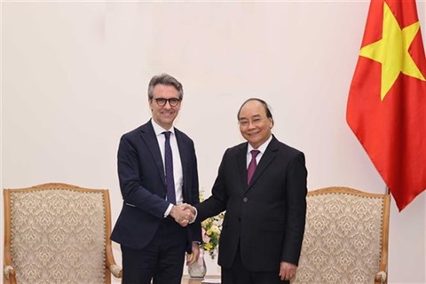 | Le Premier ministre Nguyên Xuân Phuc (à droite) serre la main de l’ambassadeur Giorgio Aliberti, chef de la délégation de l’UE au Vietnam, le 10 décembre. |