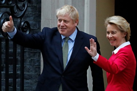| Le Premier ministre britannique Boris Johnson et la présidente de l'Union européenne Ursula von der Leyen devant Downing Street le 8 janvier. |