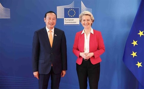 | L'ambassadeur Nguyên Van Thao, représentant en chef de la Mission du Vietnam auprès de l'UE, et la présidente de la CE, Ursula Von der Leyen. |
