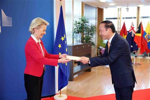 | L'ambassadeur Nguyên Van Thao remet le 14 juillet à Bruxelles ses lettres de créance à la présidente de la CE, Ursula Von der Leyen. |
