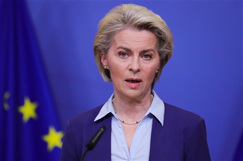 | La présidente de la Commission européenne Ursula von der Leyen s'exprime à Bruxelles, le 22 février. |