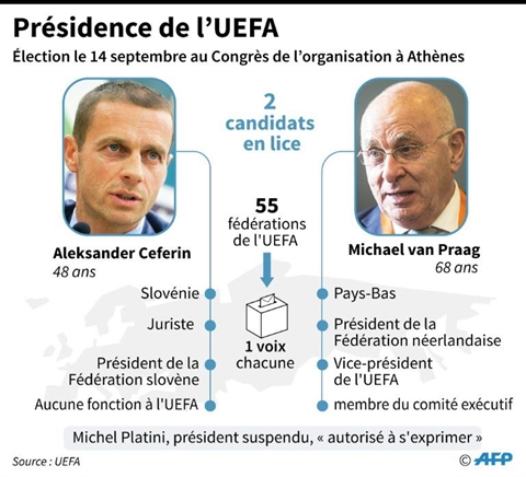 L'Espagnol Angel Maria Villar s'est retiré, laissant deux candidats s'opposer : Michael van Praag, 68 ans, président de la Fédération néerlandaise, et son homologue de la Fédération slovène Aleksander Ceferin, 48 ans.
