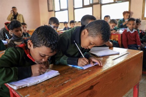 | Des enfants dans une école du Yémen à Sanaa le 2 août. |