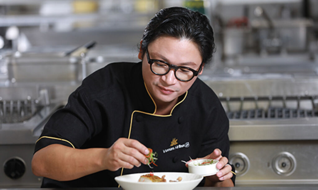 Il puise également son inspiration culinaire dans des plats emblématiques, tels que le pho (soupe de nouilles à la viande de bœuf ou de poulet) dans la province de Nam Dinh et le bun cha (vermicelles de riz à la viande de porc grillée) à Hanoï.