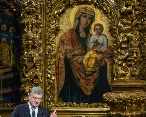 | Le président ukrénien Petro Poroshenko met un terme 332 ans de tutelle religieuse russe sur l'Ukraine, à Kiev le 15 décembre 2018. |