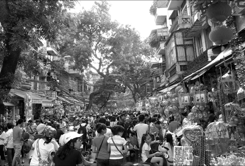 Depuis plus d'un mois, l'or et le rouge sont à l'honneur dans les rues des grandes villes. Poussant comme des champignons, des kiosques aux couleurs du bonheur et de la prospérité masquent vitrines et façades. Derrière des étalages croulant sous les coffrets-cadeaux, d'accortes vendeuses sont prêtes à emballer les gâteaux qui emballeront petits et grands. Les tiroirs-caisses des magasins de jouets se préparent à d'incessants va-et-vient pour la plus grande joie de leurs propriétaires. Dans le Vieux Quartier de Hanoi, la rue Hàng Ma resplendit de toutes les lanternes qu'elle prépare pour les défilés des enfants... L'automne peut bien s'installer, les Vietnamiens feront la fête !