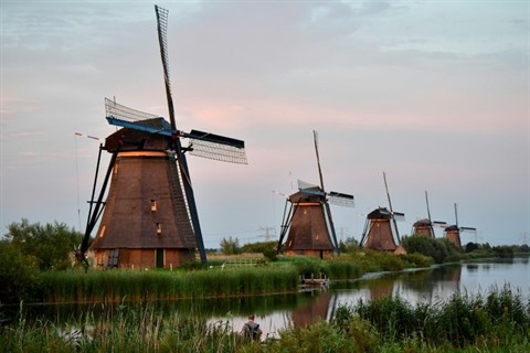 | Les moulins à vent de Kinderdijk, le 31 juillet 2017 aux Pays-Bas. |