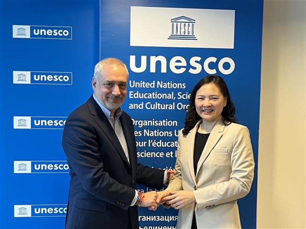L'ambassadrice a réaffirmé l'engagement du Vietnam à coopérer étroitement avec l'UNESCO pour protéger et promouvoir ses valeurs patrimoniales tout en favorisant le développement socio-économique local. Elle a également souligné l'importance de la participation active du Vietnam aux mécanismes clés de l'UNESCO dans le domaine culturel et exprimé le souhait de recevoir un soutien continu dans des projets majeurs tels que la restauration de certains ouvrages de la Cité impériale de Thang Long, la préparation du dossier pour l'inscription du complexe de Yên Tu - Vinh Nghiêm - Côn Son, Kiêp Bac au patrimoine mondial.