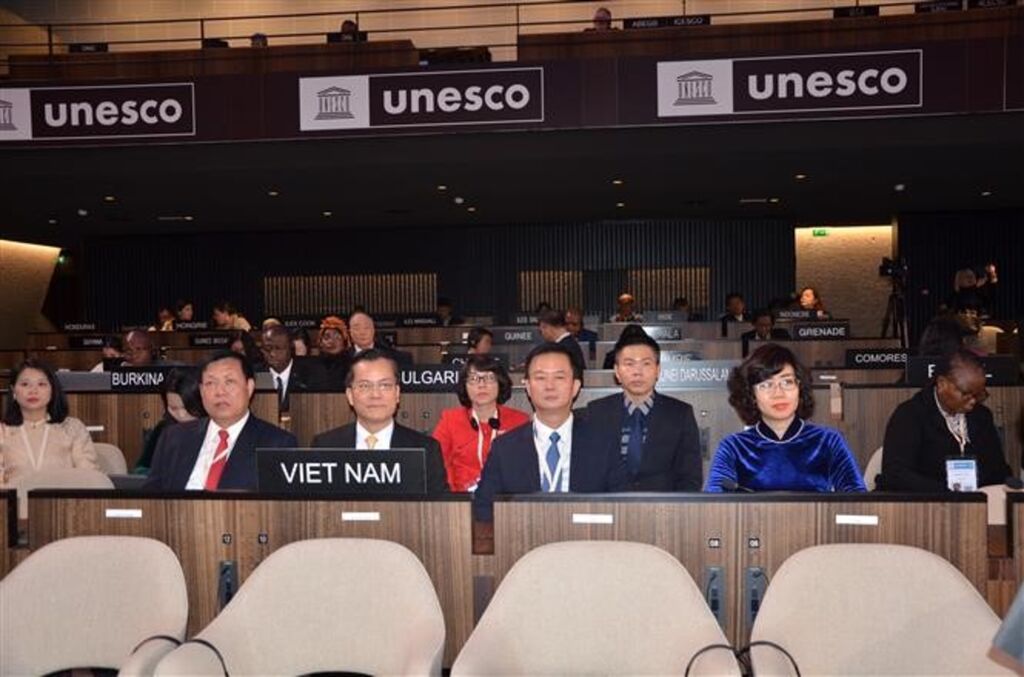 | La délégation vietnamienne participant à la 42e session de la conférence générale de l’UNESCO à Paris. |