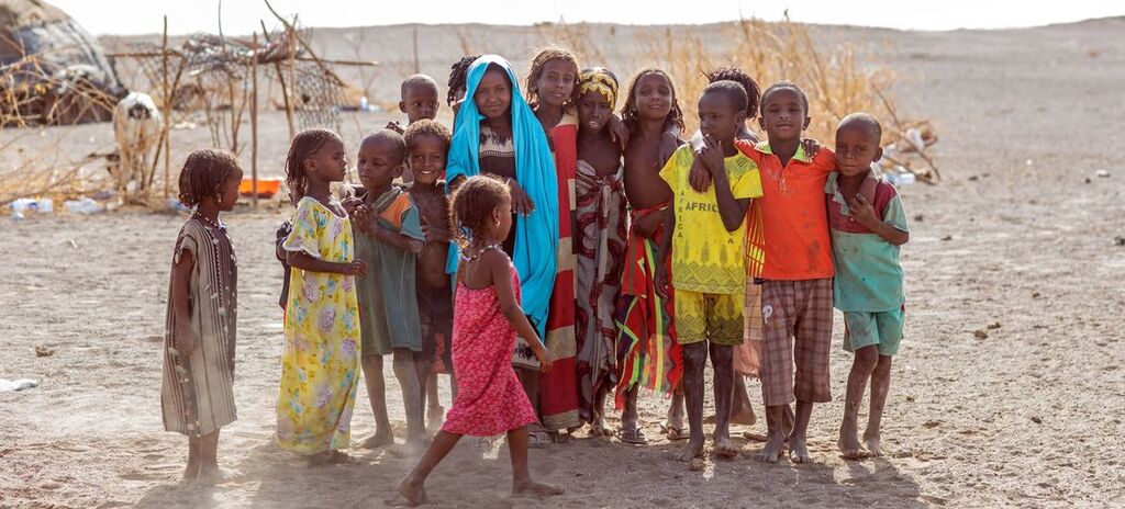 | Des enfants déplacés par le conflit et la sécheresse à Semera, dans la région d'Afar, en Éthiopie. |