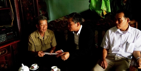 | Le vice-président de l’Union des organisations d’amitié du Vietnam, Dôn Tuân Phong (centre), offre le 5 novembre des cadeaux à une famille de la commune de Diêm Mac, province de Thai Nguyên (Nord). |