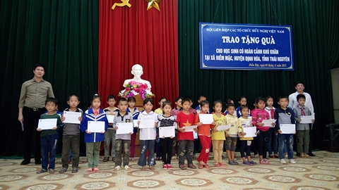 Dans le but de soutenir des familles locales en situation de précarité, l’UOAV a remis le 5 novembre 120 bourses, d'une valeur unitaire de 600.000 dôngs, à de bons élèves de la commune de Diêm Mac. «Je suis heureuse de recevoir cette bourse. Je promets de faire le maximum pour obtenir plus de bonnes notes», a dit en souriant Nông Thi Châm, de l’École secondaire Hoàng Ngân. La totalité de ces bourses a été financée par l’ONG Caritas Germany.