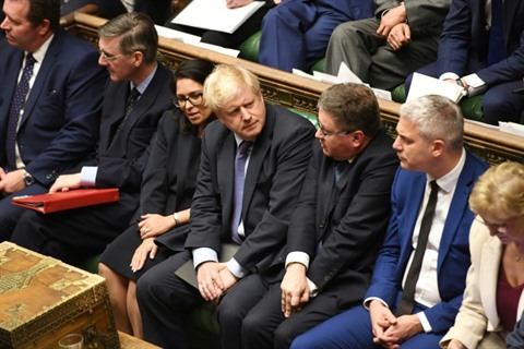 | Le Premier ministre britannique Boris Johnson (centre) à la Chambre des communes, le 22 octobre. |