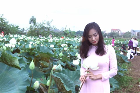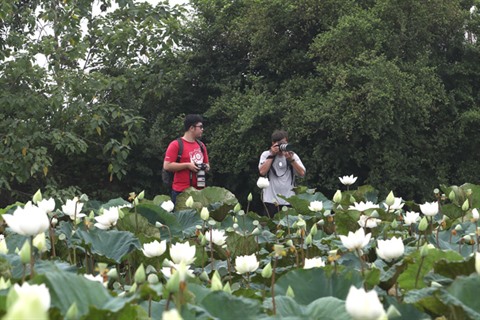 | L’unique étang de lotus blanc en banlieue de Hanoï attire chaque jour de nombreux visiteurs. |