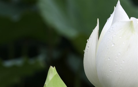 Le lotus blanc symbolise la pureté et la grâce. Les pétales trempés de rosée agités par la brise créent une beauté des plus romantiques. Les feuilles rondes, de couleur verte foncée, aux nervures saillantes, flottent à la surface de l’eau. Un paysage poétique, comme figé dans le temps, à l’écart de la vie urbaine tumultueuse.