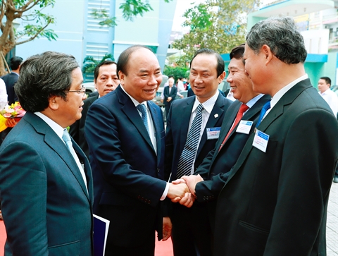 | Le Premier ministre Nguyên Xuân Phuc et les responsables de l’Université de Dà Nang (Centre). |
