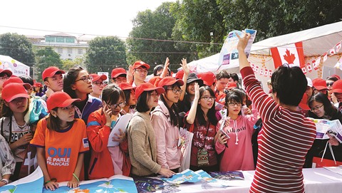 | Les jeunes francophiles sont très enthousiastes de participer aux activités de la Journée de la Francophonie à l’Université de Hanoï. |