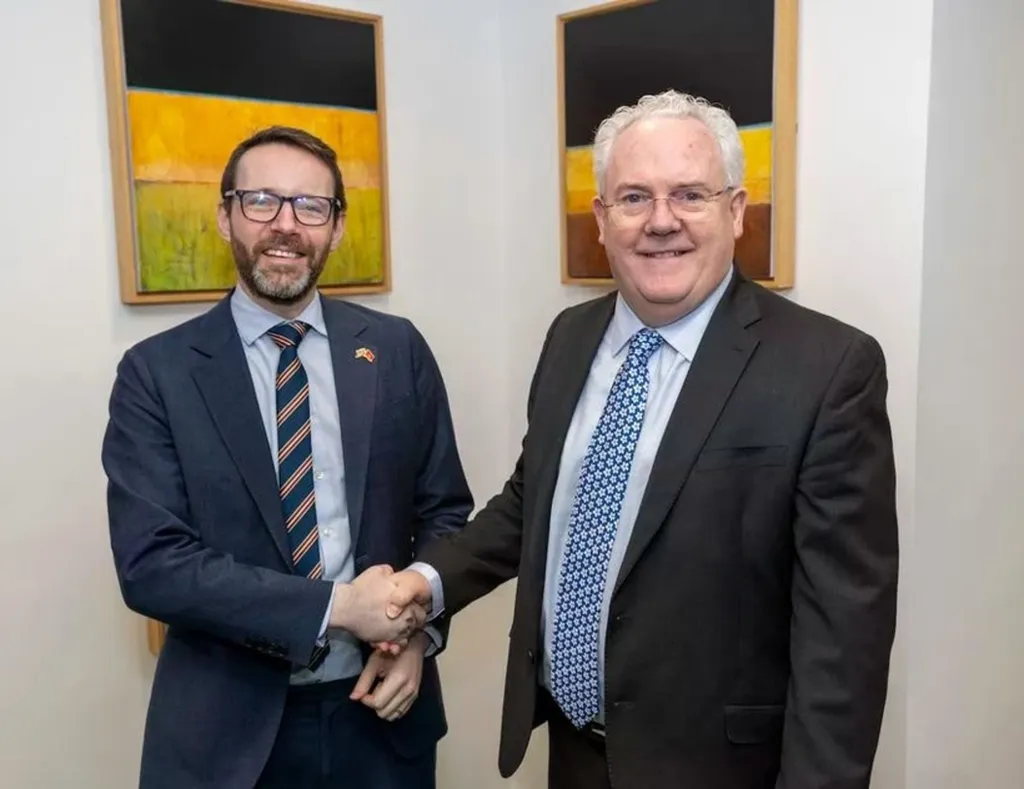 | L’ambassadeur du Royaume-Uni au Vietnam, Iain Frew (gauche) et le Professeur Gerry McCormac, principal et vice-chancelier de l’Université de Stirling. |