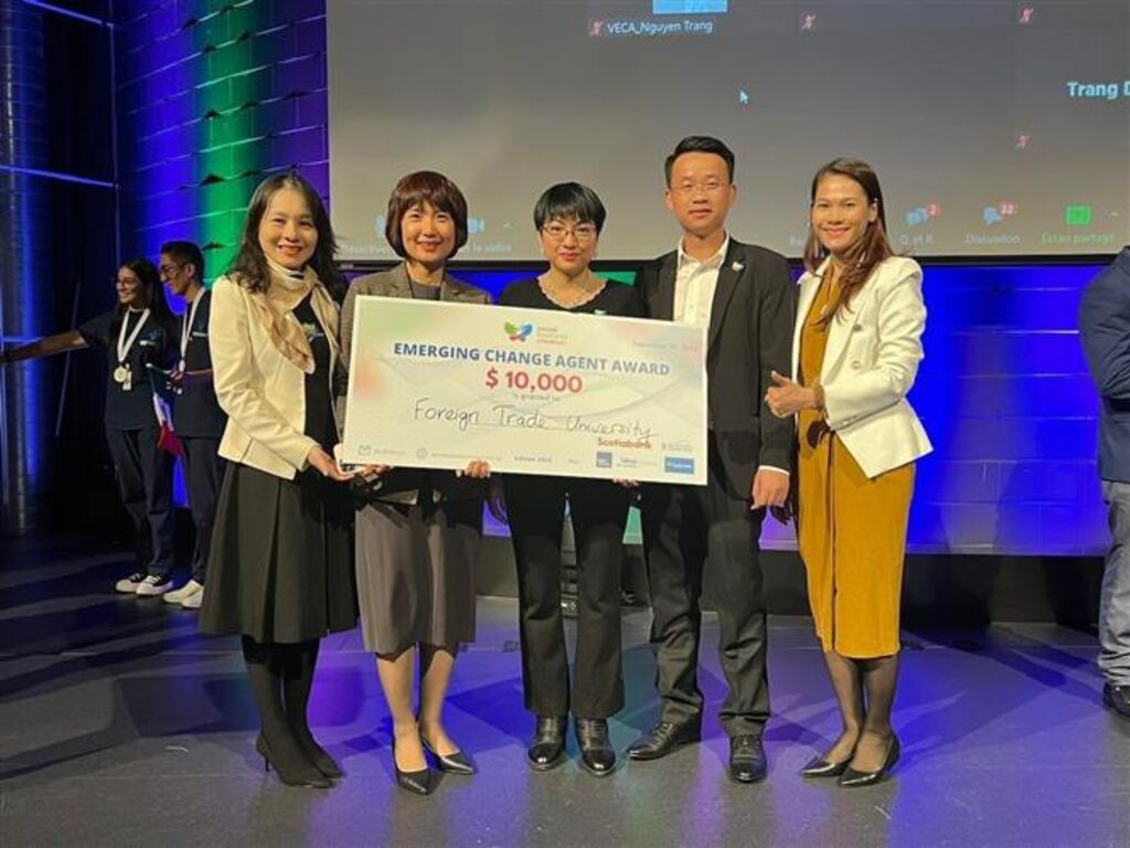 | Des représentants de l'Université du commerce extérieur reçoivent le prix "Emerging Change Agent", le 30 septembre au Canada. |