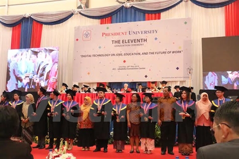 En recevant l'ambassadeur du Vietnam en Indonésie, Hoàng Anh Tuân, qui venait assister à la cérémonie de remise de diplômes à plus de 750 étudiants dont 10 vietnamiens, le recteur de l'Université President, Chandra Setiawan, a annoncé qu'en plus des cursus en anglais et en indonésien, les étudiants vietnamiens auraient beaucoup d'opportunités de découvrir la culture locale afin de promouvoir la compréhension entre les deux peuples.