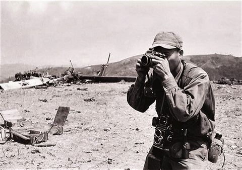| Le photographe de guerre Luong Nghia Dung au travail. |
