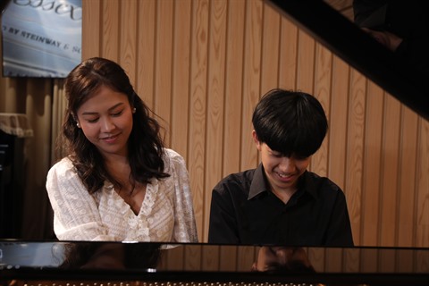 | Les pianistes Luong Tô Nhu et Trân Gia Quang. |