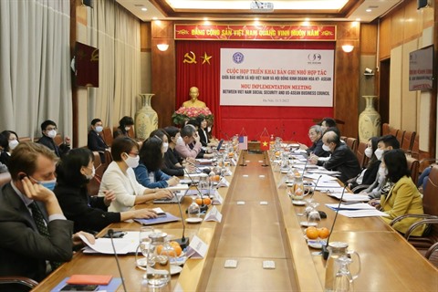 | Séance de travail entre les représentants du Conseil d'affaires États-Unis - ASEAN (USABC) et de la Sécurité sociale du Vietnam (VSS), le 11 mars. |